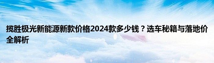 希望这些信息能帮助您更好地了解2024款揽胜极光新能源的价格及相关选购技巧!如果您还有其他疑问,欢迎随时提问。